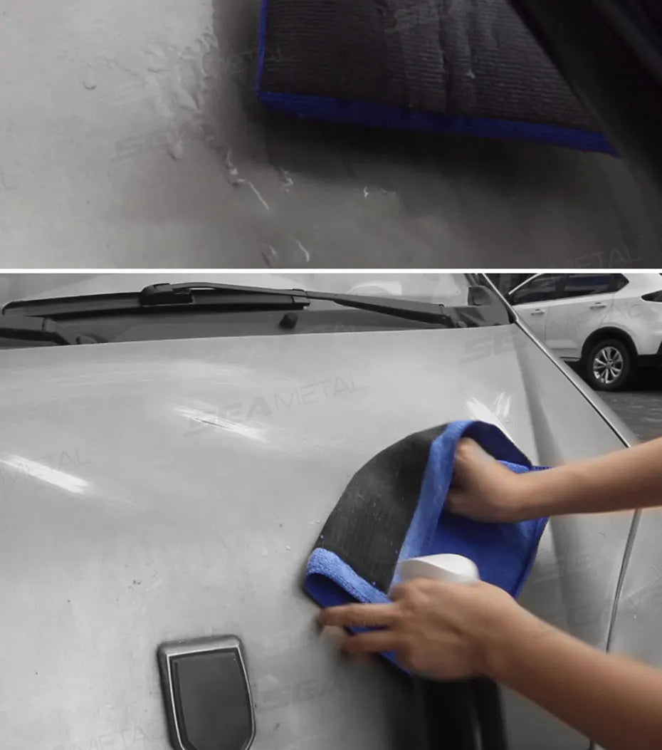 Achieve smooth, contaminant-free car surfaces with the magic clay cloth. Available in 1 or 2 pieces, each cloth comes with a blue clay bar that removes dirt, grime, and industrial fallout from paint without scratching. Perfect for professional detailers or DIY enthusiasts, it ensures a polished and flawless finish.
