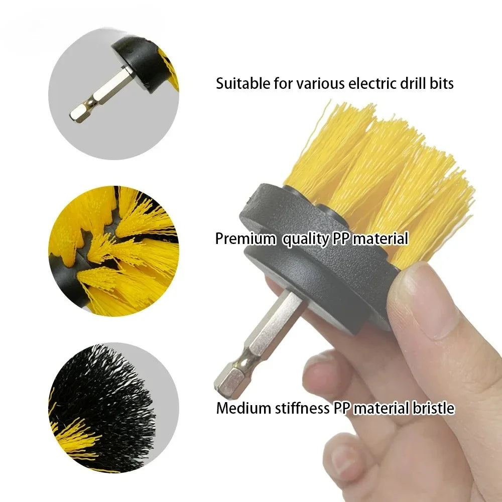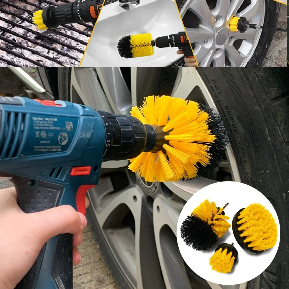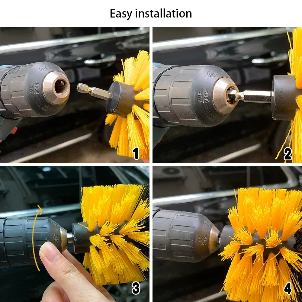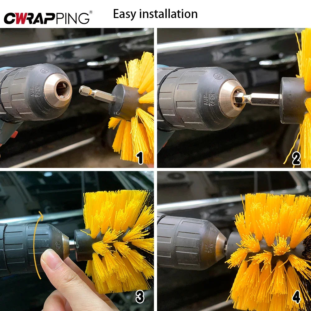 Make car detailing faster and more efficient with this high-density nylon drill brush set. Designed to attach to standard electric drills, these brushes clean carpets, upholstery, wheels, glass, and more. Durable bristles remove dirt and grime effortlessly, saving time compared to manual scrubbing. Perfect for both professional detailers and DIY enthusiasts.
